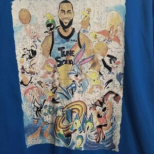 Blue T shirt, no size tag. Front picture is cracking some as shown above. T shirt is in fair pre-owned condition. pit to pit approx 21 length approx 28. Please see pix and measurements above.