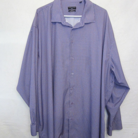 Shaquille O'Neal XLG Big Fit Cooling Stretch Purple Check Button Down Men's