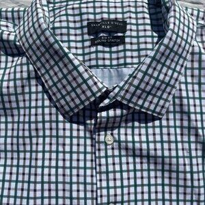 This Shaquille O'Neal XLG men's long-sleeve dress shirt from the brand's big and tall collection will become a go-to for special occasions. Designed for easy care from a soft woven fabric, this button-down has a spread collar, fitted sleeves and a checked pattern.