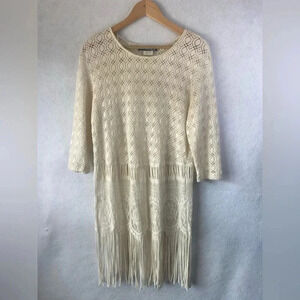 Sharade of California Women's Fringe Crochet 3/4 Sleeve Swim Cover Up Size 14W
