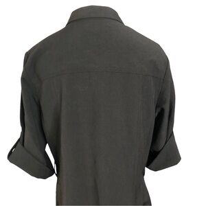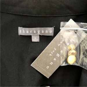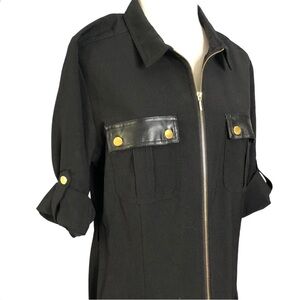 Sharagano Black Zip Front Shirt Dress Faux Leather Trim Size 14