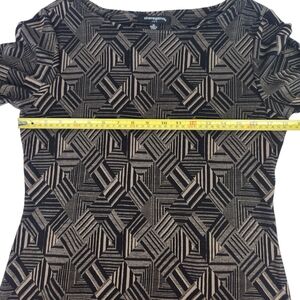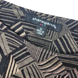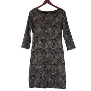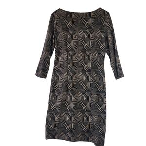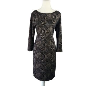 Sharagano Black and Tan Bodycon Geometric Midi Dress Size 10