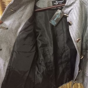 Sharagano Cape Blazer Jacket Black & White Cropped Herringbone Bell Sleeves S/34