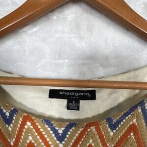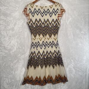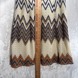 Sharagano Chevron Crochet Stitch Dress 6 Cap Sleeves Retro Boho 70's Earthy