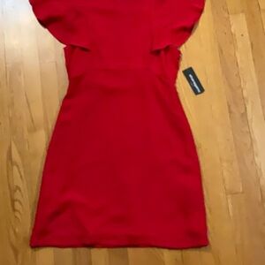 Sharagano Dress Apple Red Size 4 Flutter Sleeves Princess A-Line