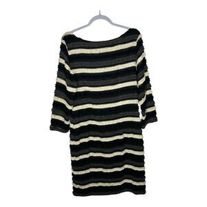 Sharagano Dress Womens Size 14 Striped Textured 3/4 Sleeves Boho Fall Black