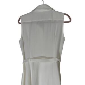 Sharagano Ivory Collared Sleeveless Tie Waist Solid A-line Rayon Dress Size 10