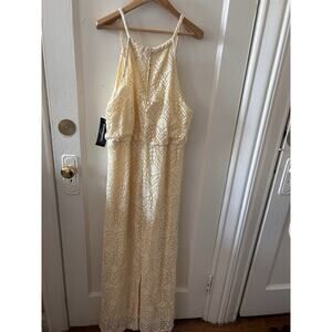 Sharagano Lace Maxi Dress Light Yellow Tank Cinched Waist | 12
