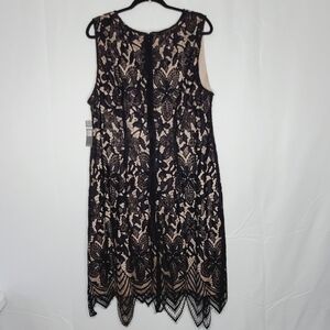 NWT Sharagano Lace Overlay Fringe Hem Dress Size 22W. Elevated classic lace dress updated with a scalloped fringe hem and a bit of stretch to flatter curves.