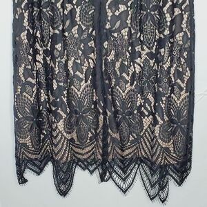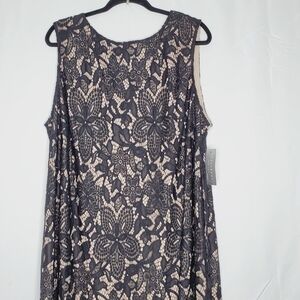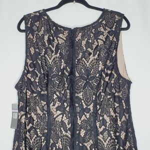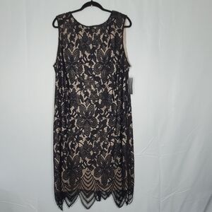 NWT Sharagano Lace Overlay Fringe Hem Dress Size 22W. Elevated classic lace dress updated with a scalloped fringe hem and a bit of stretch to flatter curves.