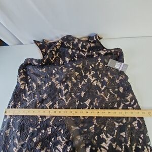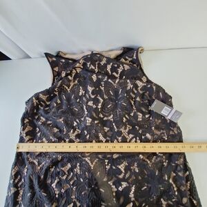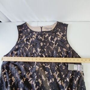 Sharagano Lace Overlay Fringe Hem Dress 22W Black Sleeveless Cocktail Whimsy NEW