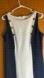 Sheragano Navy Blue & White Fitted Shift Dress. Gold button Details. Zipper with Hook & Eye Closure