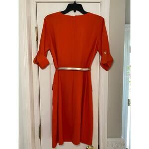 Sharagano Orange Belted Dress Front Exposed Zip - Cargo Pocket Tab Sleeve Sz 6