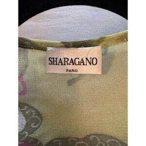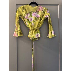 Sharagano Paris Green Floral Ruffled Sheer Wrap Top With Tie Closure Womens Smal