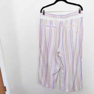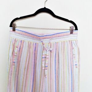 Sharagano Pastel Striped Linen Blend Wide Leg Drawstring Waist Pants