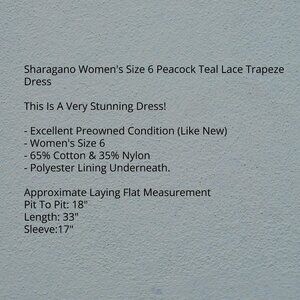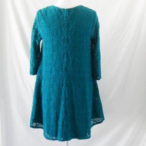 Sharagano Women's Size 6 Peacock Teal Lace Trapeze Dress