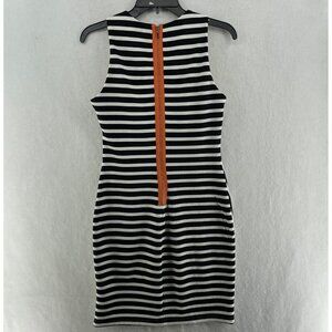 Sharagano Pencil Dress Women's Sz 2 Black Striped Round Neck Back Zip Sleeveless