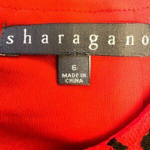 Sharagano Red & Black Lace Dress Sz 6 Floral Pattern Bell Sleeves Lined Interior
