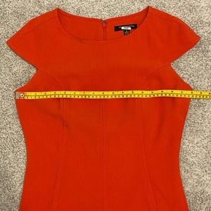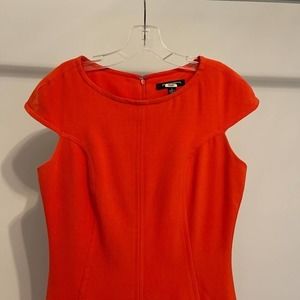 Elegant orange dress by Sharagano. Features a sleeveless design with a fitted silhouette. Perfect for any occasion.