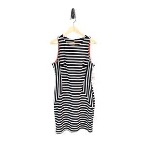 Sharagano Sheath Dress Size 12 Sleeveless Fitted Bold Black and White Stripes