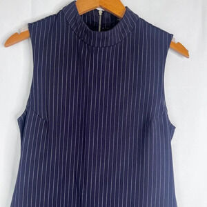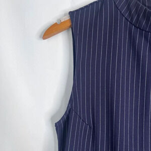 Sharagano Striped Navy White Midi Dress Mock Neck Sheath Sleeveless Size 4