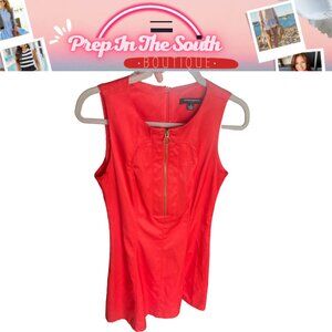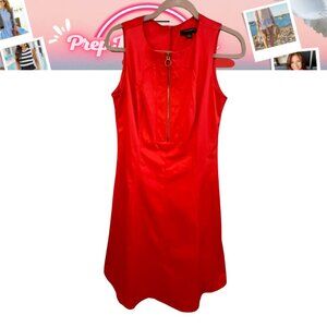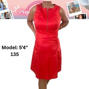 Sharagano Dress, Ponte Knit Dress, Fit and Flare, Zip Front Dress, Sleeveless Dress, Orange Red Dress, Business Casual Dress, Work to Weekend, Minimalist Style, Preppy Chic, Summer Dress, Brunch Outfit, Travel Dress, Office Style, Day to Night Dress