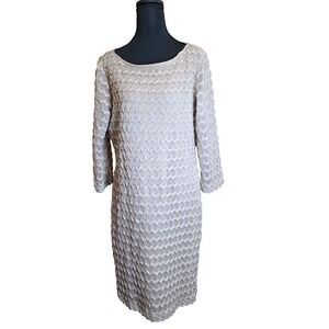 Sharagano Women's Beige Honeycomb Textured 3/4 Sleeve Dress Size 14