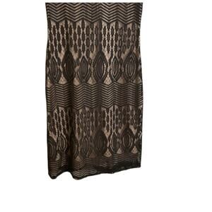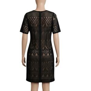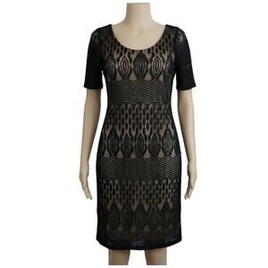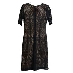 Sharagano Women's Black Lace Overlay Nude Lined Sheath Dress Sz 8 Cocktail Party