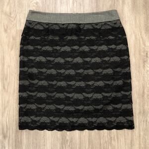Sharagano Women's Gray/Black Floral Lace Overlay Knee Length Pencil Skirt sz 10