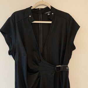 Sharagano Womens Plus Size 16W Black Surplice Sheath Dress