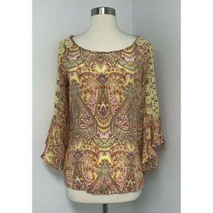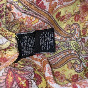 Sharagano Womens Shirt Size Small Yellow Pink Orange Geometric Print Top Crochet