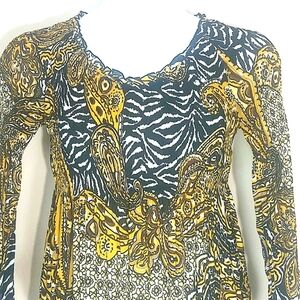 Sharagano Zebra Print Gold Baroque Paisley Tunic Top Long Sleeve Small S Mobwife