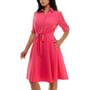 Sharagano scuba crepe Short A Line Pocket Cocktail Dress fuschia belted sz 12