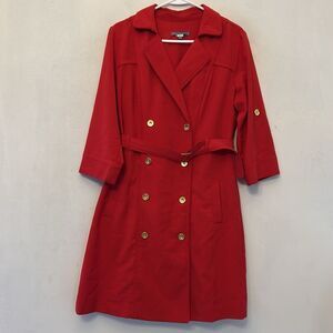 Sharagano Red Trench Coat with Belted Waist and gold buttons Size 10 EUC