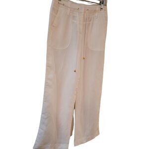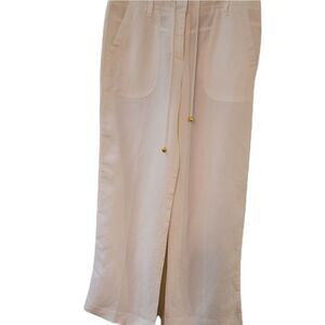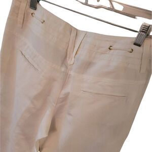 Color White, Size 4, Ankle Length, Midi Rise, Rayon Material, Ramie Material, Waist Tie, Boyfriend Fit, Two Front Square Deep Pockets, Two Back Small Pockets, Belt Loops, Versatile Wear, Spring/Summer Wear, Like New, Exellent Condition.