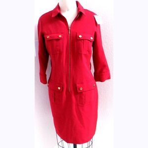 Features: front zipper, gold hardware accents, sleeves can roll up with button secure