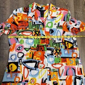 Share Ali Miles COLORFUL ABSTRACT C'EST LA VIE Lightweight Jacket Tunic Sz M