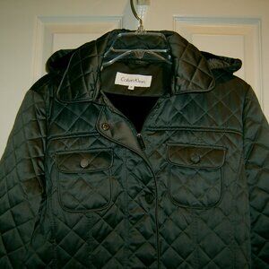Share Calvin Klein CK Grey Quilted Jacket, Removable Hood, Women's Size M