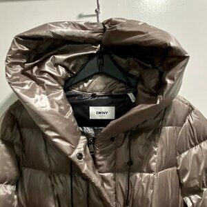DKNY F2024 Cozy Long 700 Premium Duck Down Puffer Zip Up Hood Coat Jacket XL