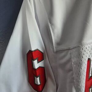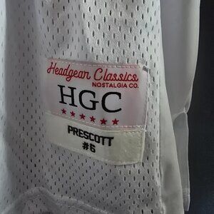 Score a vintage look with this brand new Headgear Classics Haughton #6 "Prescott" jersey! Featuring a classic white mesh design with bold red lettering and numbers, this jersey is perfect for showing your support or adding a sporty touch to your outfit. The breathable fabric and athletic cut make it a comfortable and stylish choice. This is a size M and is brand new with its original tags.