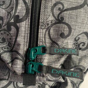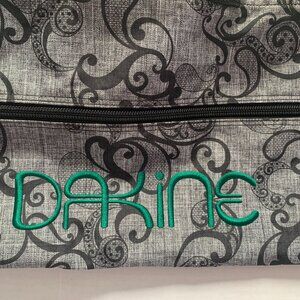 Color/Pattern: Gray with black swirl print, green Dakine logo and zipper accents