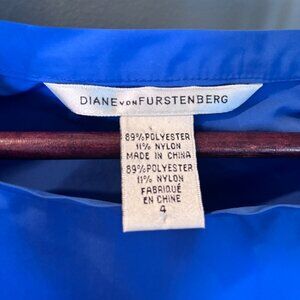 Womens size 4 tie front blue sheath style Diane von Furstenberg sleeveless dress. This lightweight beauty is an instant outfit for business or a night out. Very flattering at waist. See photo 5 for light discoloration on front right breast area.