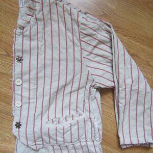 Linen jacket with buttons and snaps on front. 2 large snaps at wrists.