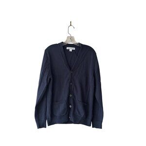 Share Mens Navy Blue Cardigan Sweater V Neck Button Up M 100%Cotton Fall Staple