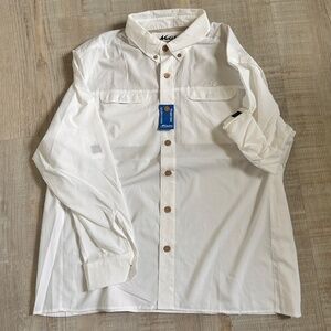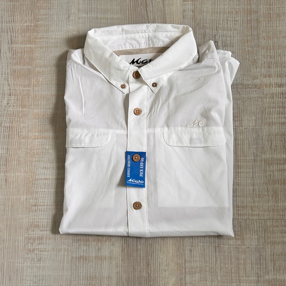 The Mojo Sportswear Company Men's Long Sleeve white Shirt is a lightweight and breathable option perfect for summer hiking adventures. Made of nylon, this button-up shirt features a collared neckline and accents with a button-down style. The solid white color and woven fabric make it versatile for a variety of outdoor occasions, while the regular fit ensures comfort during active pursuits. Ideal for men who appreciate a casual yet stylish look, this shirt is machine washable for easy maintenance and is suitable for spring, summer, and fall seasons.