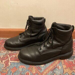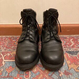This premium heavy-duty boot is built to get you through long, tough hours in demanding work environments. A dual-density urethane sole combines exceptional cushioning and comfort with a rugged outsole that protects and is highly resistant to chemicals and abrasion. The full-grain Red Wing leather upper further enhances durability.