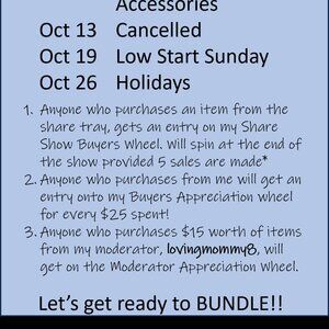 Anyone who purchases an item from the share tray, gets an entry on my Share Show Buyers Wheel. Will spin at the end of the show provided 5 sales are made*
