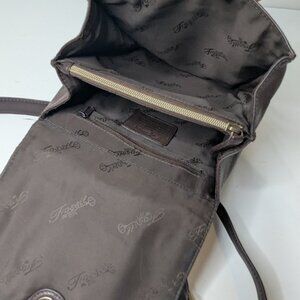 This authentic vintage Fossil 75082 crossbody messenger style bag, in a dark brown pebbled leather, is in fantastic condition. Comes with an adjustable strap that measures up to ". Comes with original key charm. Very clean No rips, stains, or tears in the leather or the fabric interior. This bag has multiple compartments inside and several zipper compartments too. Please see pictures for item condition. Shipped from a smoke and pet-free home.