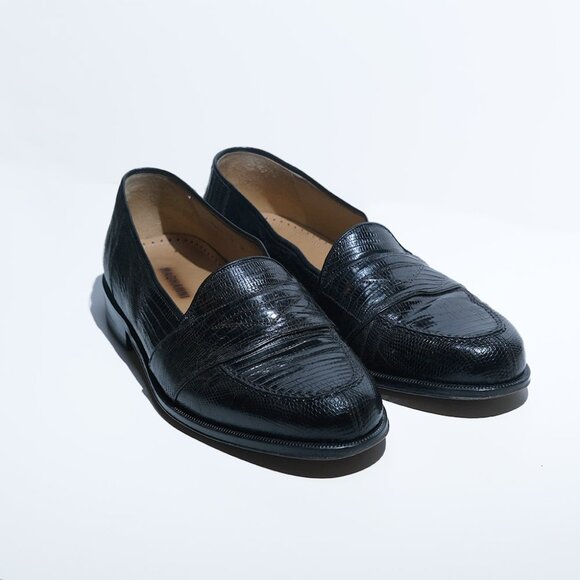 Share Vintage Magnanni Black Lizard leather Penny Loafer Men's Size 9 M Made in