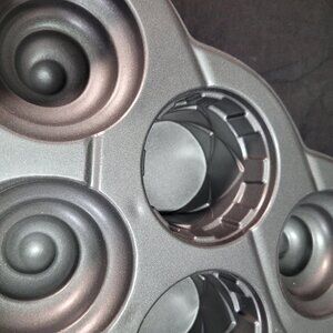 The Wilton Cupcake Baking Pan Mold is a large, heavy-duty aluminum pan with 8 cavities for baking cupcakes. The gray pan is designed for use in both electric and gas ovens, making it versatile for any baking needs. With a non-stick surface coating, this original Wilton cake pan is easy to clean and dishwasher safe, ensuring hassle-free maintenance. Perfect for baking enthusiast or collectors, this 3D cupcake baking pan mold is a must-have for any kitchen.